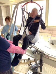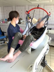 吊り上げ式移動用リフト「つるべー」を導入し、お試し期間ののち、正式運用を開始しました。