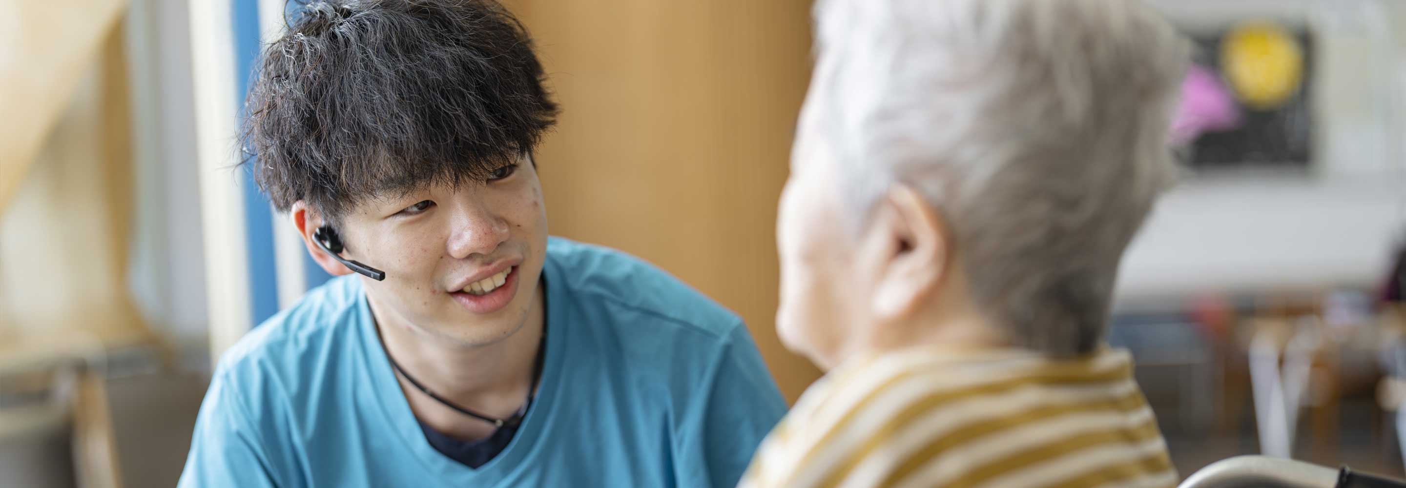 業務のなかで人と人との関わりを実感できるのが、介護の仕事の魅力です。日常の何気ない会話のなかで信頼関係が築かれていることを実感したり、介助のあとに感謝の気持ちを伝えられたり。そういう瞬間に、この仕事を選んでよかったと思います。自分自身の成長を感じられるし、目標を持って働ける点にも、やりがいを感じています。