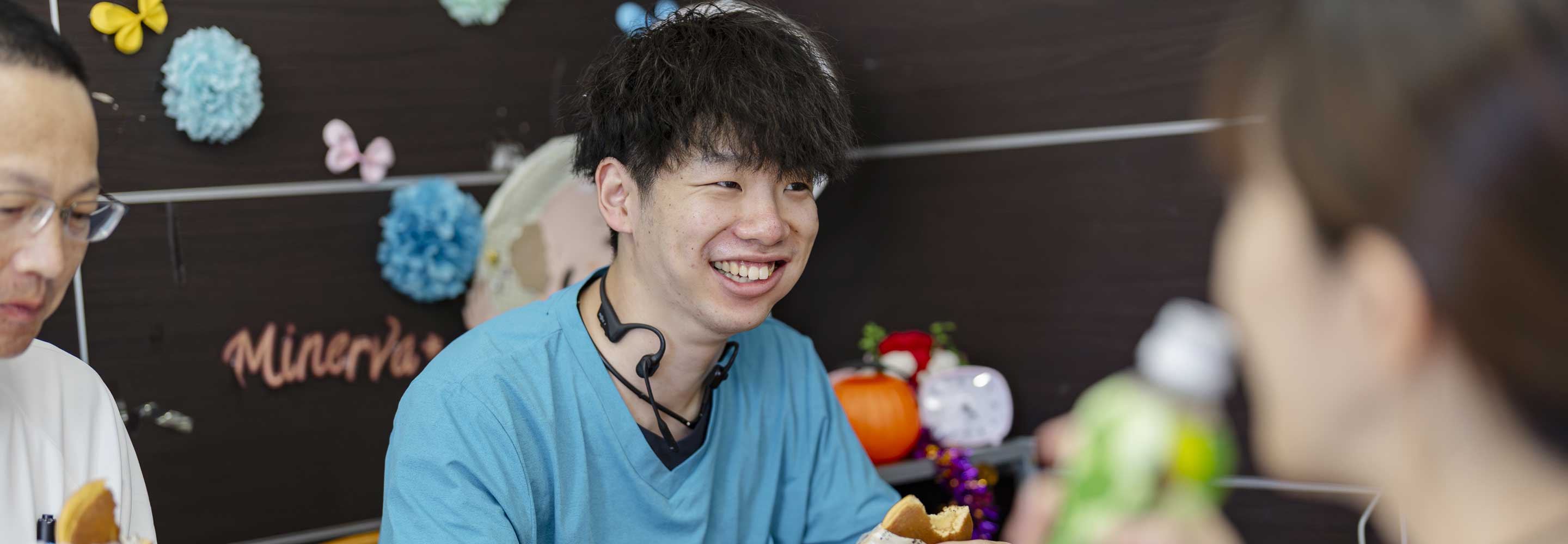介護職は「心身ともにきつそう」「土・日に休めない」「排せつの介助は大変そう」。そんなイメージを持たれがちですが、実際に経験してみて、いずれも心配するほどのことではないと感じました。ミネルワについて言えば、希望を出してある程度は自由に休みがとれますし、楽に働けるような環境も整えられていますから、敬遠せずに、飛び込んできてほしいです。