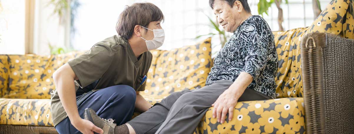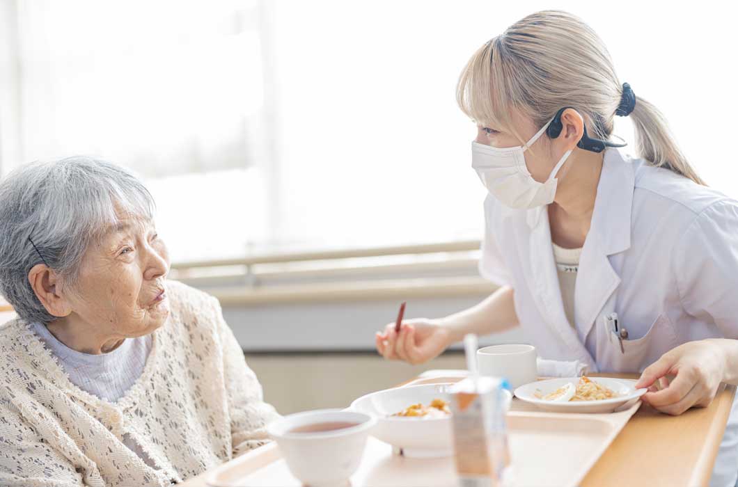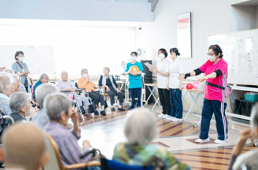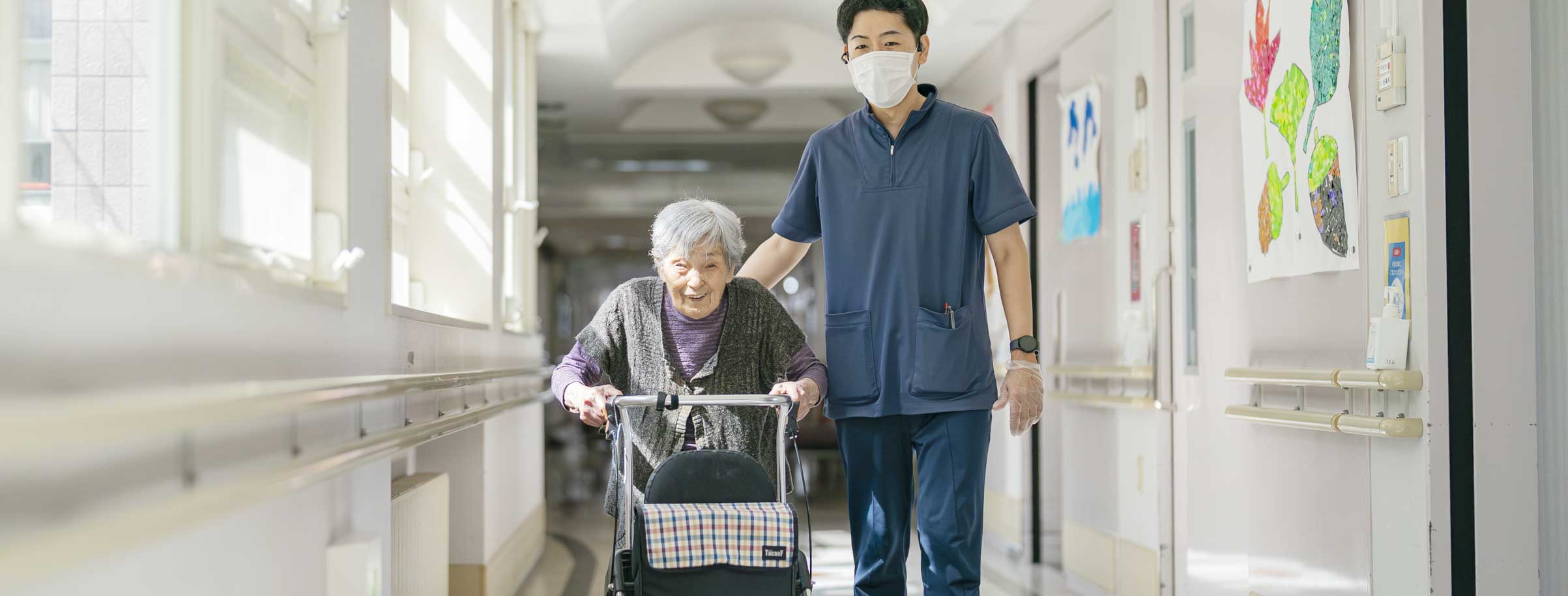 施設内で快適に過ごしていただけるよう、日常生活全般にわたる支援と介助を提供しています。一人ひとりの心身の状態を見極めながら、自立を促すケアを心がけています。また、「押さない・ひかない・持ち上げない」を基本としたノーリフティングケアを取り入れ、身体への負担をできる限り抑えた安全でやさしい介護を実践しています。利用者さまの生きがいやQOLを大切にし、プライバシーへの配慮はもちろん、心の触れ合いを生むコミュニケーションを大切にした介護を行っています。