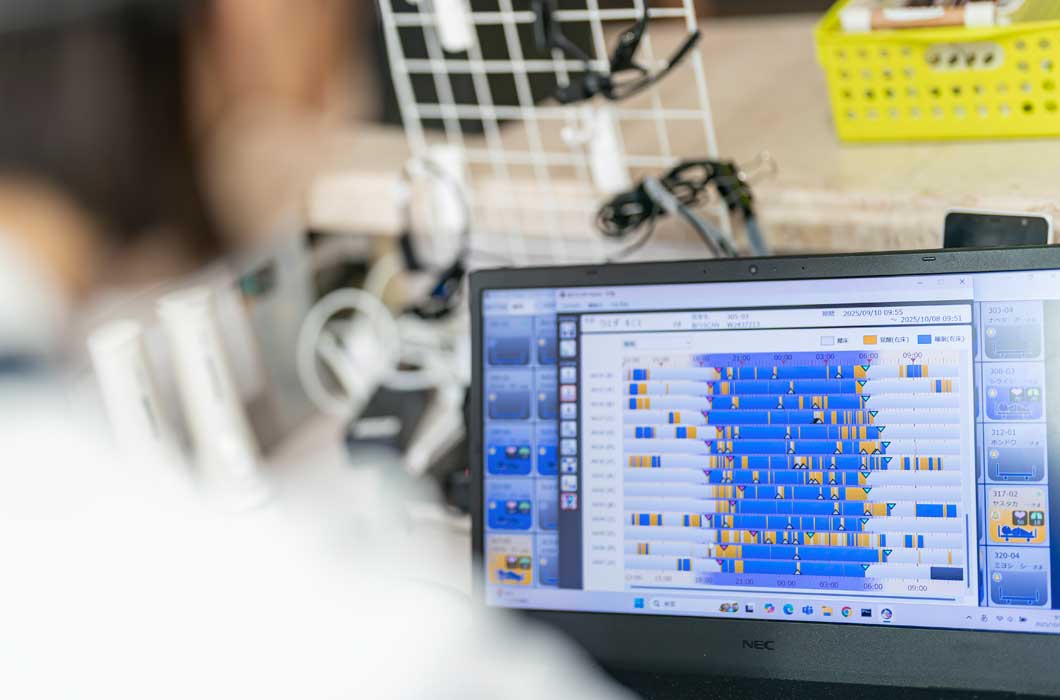 眠りSCAN(見守りスキャン)、インカム導入、メルタスによる情報一元管理で、安全と効率を両立。