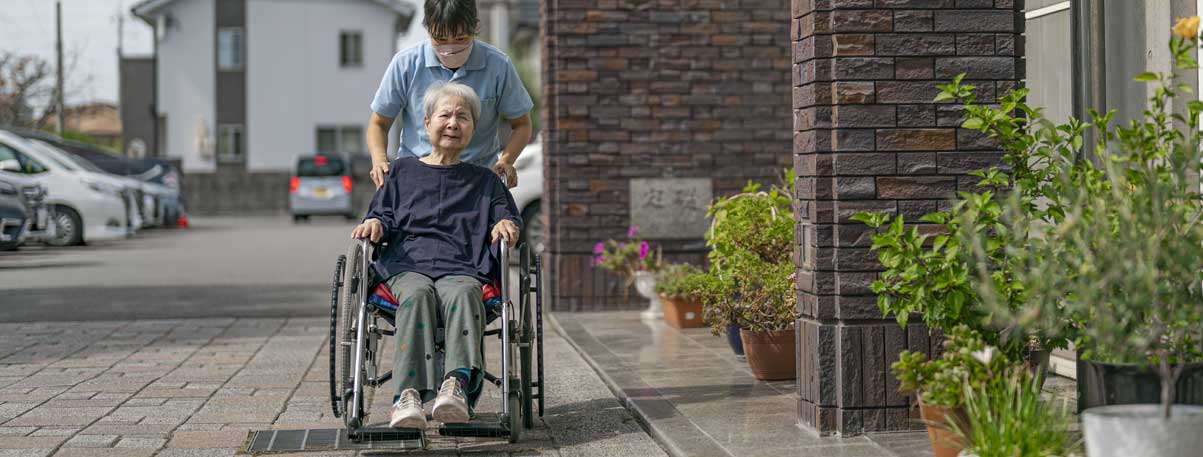 病院治療後の心身機能の低下や在宅生活が難しい方など、要介護1~5の方が入所できます。医師・看護師・リハ職・介護福祉士・管理栄養士が連携し、必要なケアで生活機能の維持・向上を支援します。ご希望により看取りにも対応。ご家族の事情で生活が困難な場合には、短期利用のショートステイも可能です。